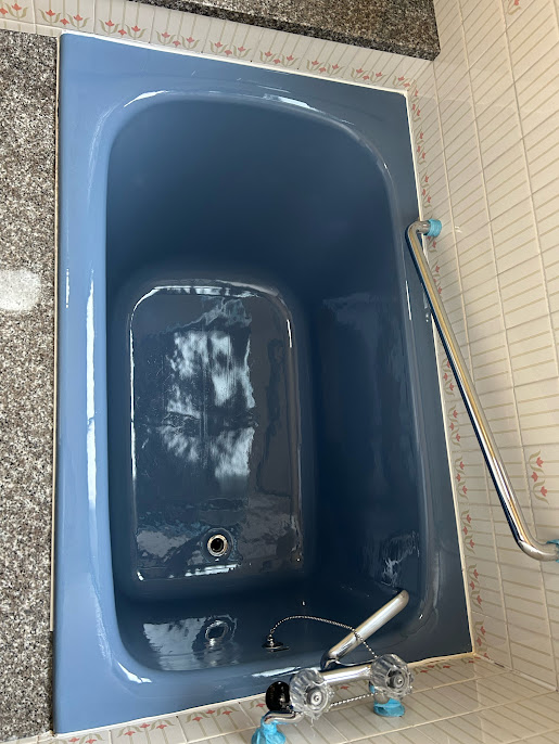 約40年間使用してきた浴槽は、表面の塗膜がはげ落ちガサガサした肌触り。掃除しても直ぐに汚れが蓄積しやすい状態でした。水垢・人垢・石鹸カスをケレンをかけてそぎ落とし、表面が現れてから全体的に研磨し最終コーティング。今回は浴槽の表面がかなり傷んでいたため、ガラスコーティングではなくシリコンコーティング仕上げとなっています。