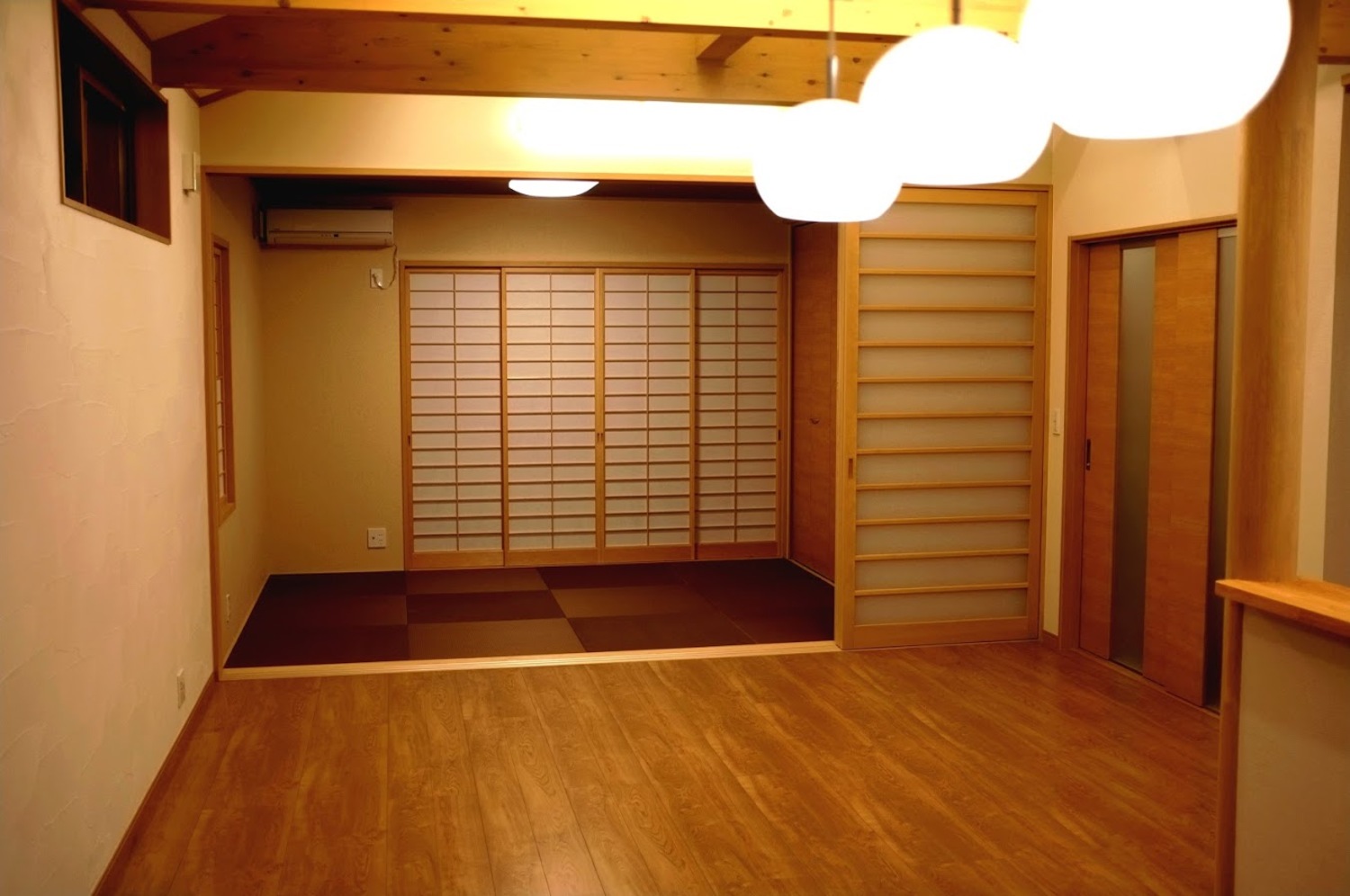 ダイニング側から見たリビング方向。奥の建具を開けると・・・